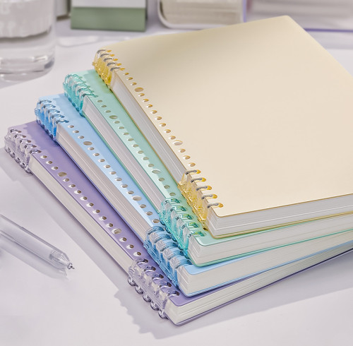 The dual ring allows for 360 degree folding and detachable addition of inner pages, allowing the notebook to be used from any direction.